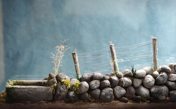 Petite vitrine de 30 cm de long représentant un paysage typique de notre région. Vitré de part et d'autre cette vitrine fait partie d'une mini série de 10 pièces.